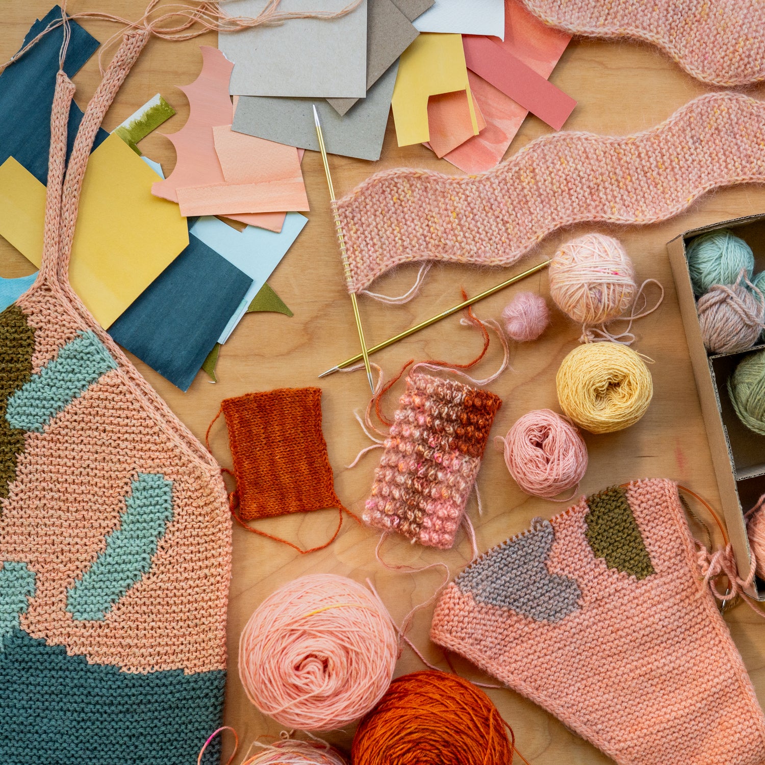 Welcome to my colourful world of knitted textiles inspired by paper collages!